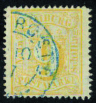 | Zusatzinformationen und Suchstichworte: | Gert Müller 114. Auktion Auktionstermin: 25. Mai 2022 Los 2800 Altdeutschland Hamburg 9 Sch. gelb, farbfrisches und erstklassig gezähntes Luxusstück mit sauber aufgesetztem blauem K2 "HAMBURG". Ein besonders attraktives Exemplar dieser Altdeutschland-Seltenheit! Fotoattest "EINWANDFREIE ERHALTUNG" Lange BPP. Ausruf 1.800,00 EUR |