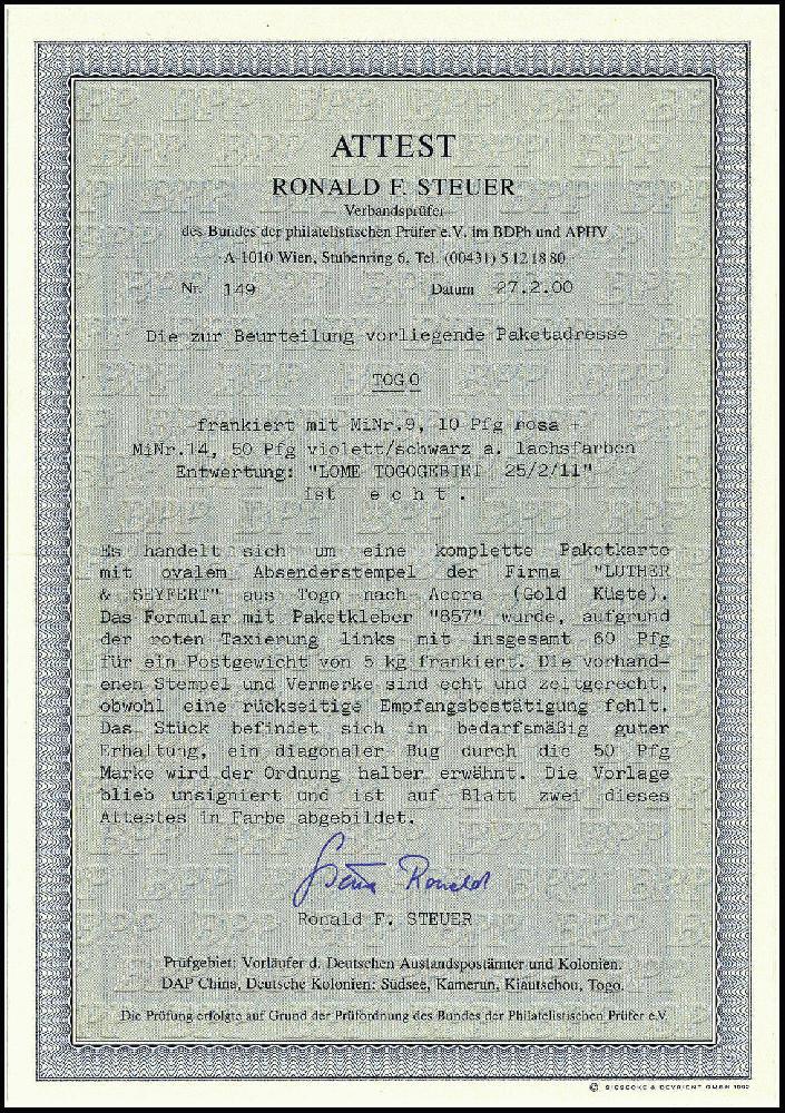 | Prüfgebiet: | Deutsche Kolonien Togo |