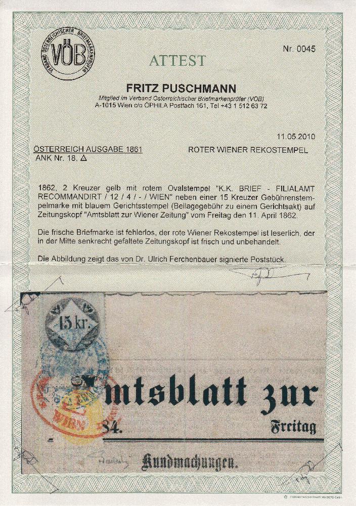 | Prüfer: | Puschmann, Fritz (VÖB (Verband Österreichischer Briefmarkenprüfer)) |