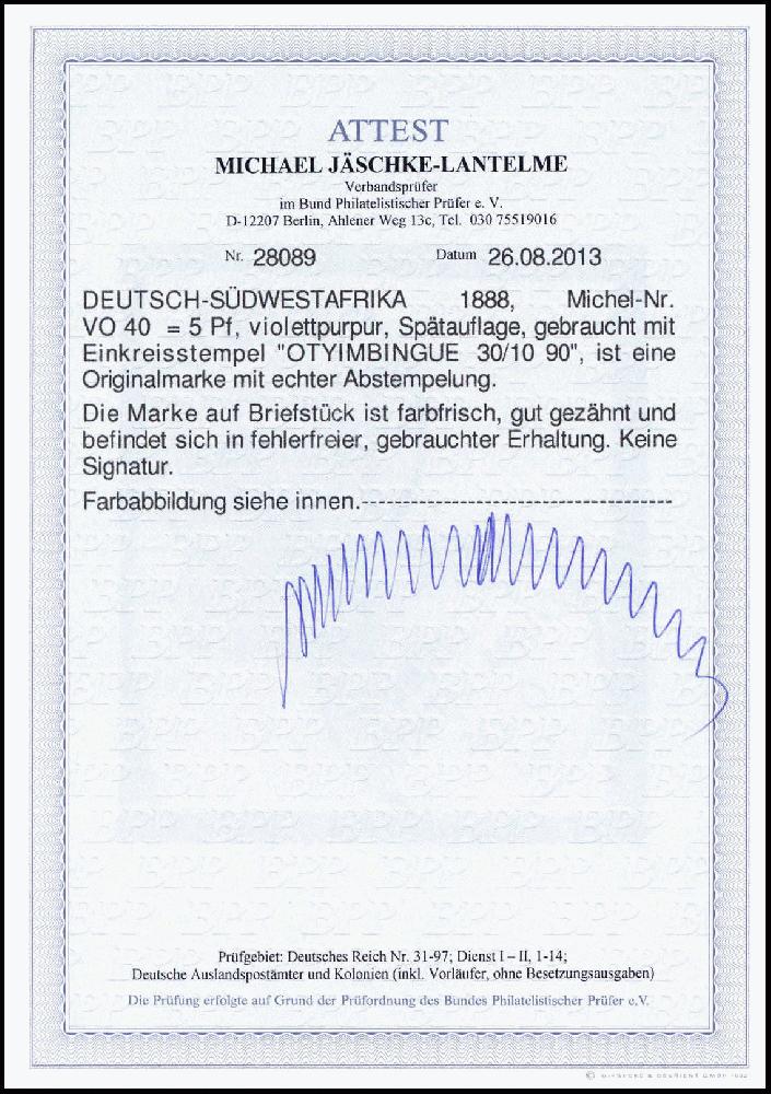 | Prüfer: | Jäschke-Lantelme, Michael (BPP (Bund Philatelistischer Prüfer)) |
