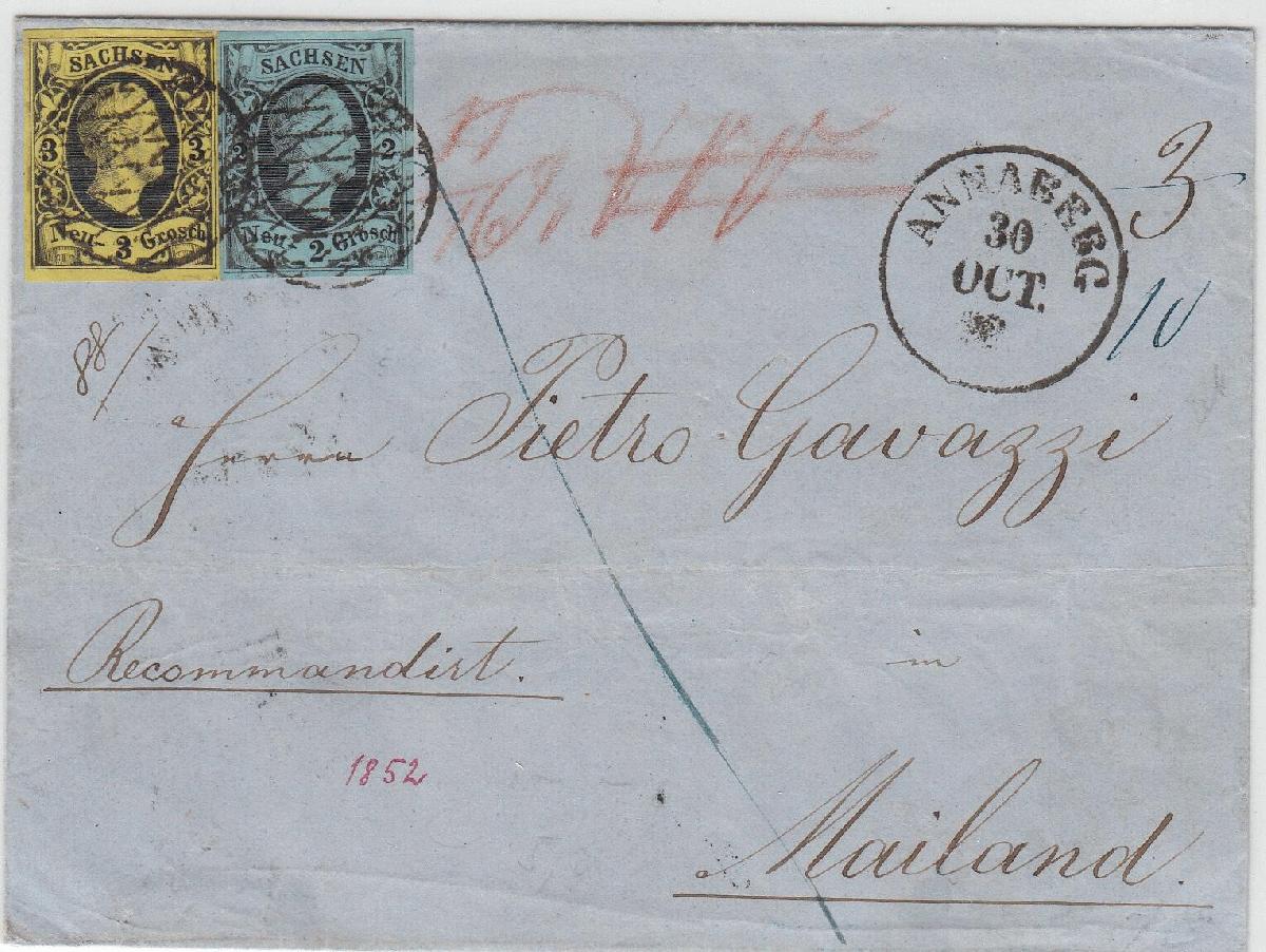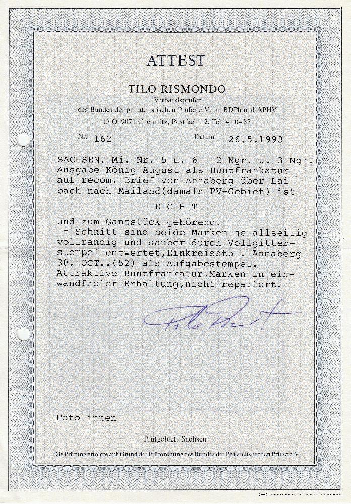 | Zusatzinformationen und Suchstichworte: | Südphila Peter Feuser 96. Auktion Auktionstermin: 7. Mai 2022 Los 1471 Altdeutschland Sachsen 2 Ngr. a. hellblau und 3 Ngr. a. gelb, breitranige Luxusstücke mit klaren Vollgitterstempeln auf dek. Chargébrief aus Annaberg nach Mailand, Attest Rismondo Zuschlag 680,00 EUR |