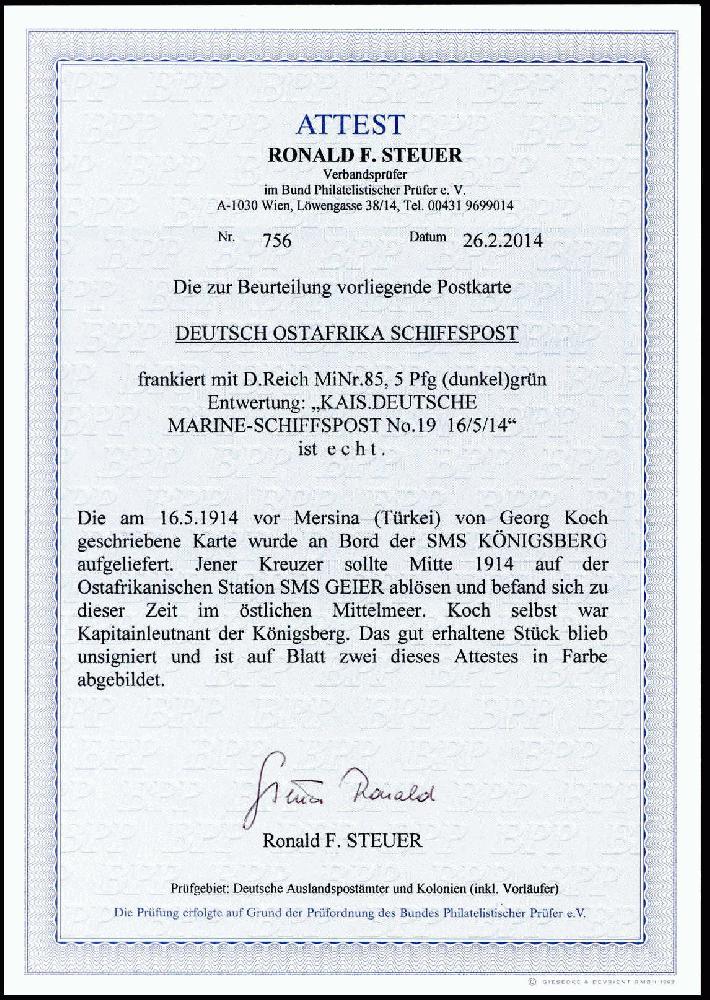 | Prüfgebiet: | Deutsche Kolonien Deutsch-Ostafrika Schiffspost |
