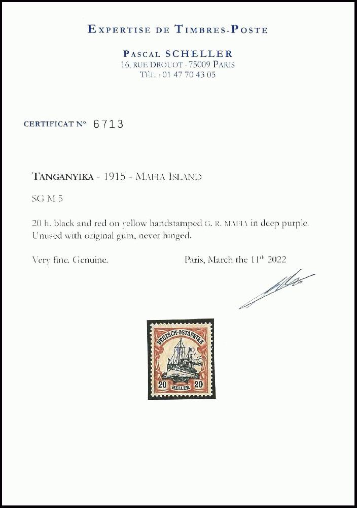 | Zusatzinformationen und Suchstichworte: | Dr. Reinhard Fischer 186. Auktion Auktionstermin: 18. - 21. Mai 2022 Los 2516 Deutsche Kolonien Ostafrika Brit. Besetzung 20 Heller Kaiseryacht mit schwärzlichviolettem Aufdruck "GRI Mafia", tadellos postfrisch, Auflage nur 140 Exemplare, gepr. Hoffmann-Giesecke, Fotobefund Eichele und Certificat Scheller (2022): "Very fine. Genuine", Mi. 400.- Zuschlag 230,00 EUR |