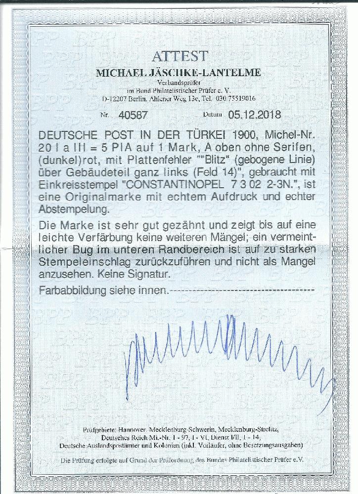 | Prüfgebiet: | Deutsche Auslandspostämter Türkei |