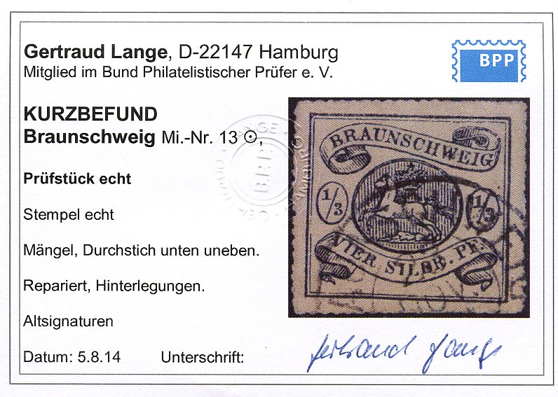 | Prüfer: | Lange, Gertraud (BPP (Bund Philatelistischer Prüfer)) |