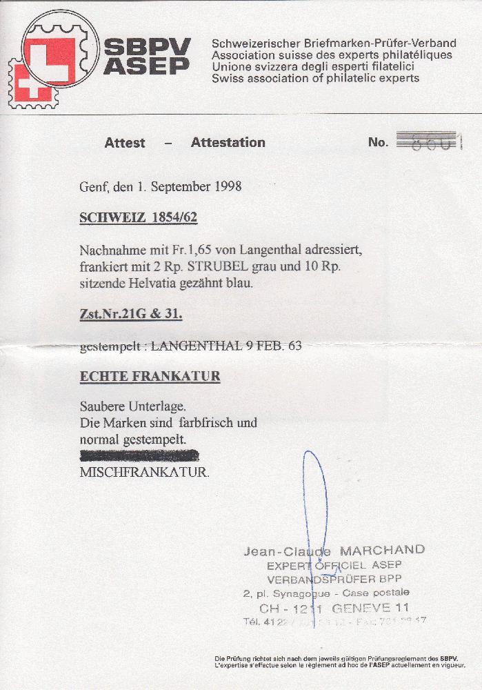 | Prüfer: | Marchand, Jean-Claude (SBPV / ASEP (Schweizerischer Briefmarken-Prüfer-Verband)) |