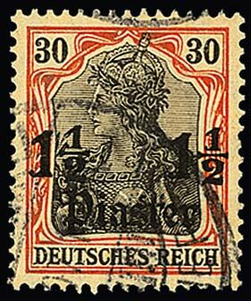 | Zusatzinformationen und Suchstichworte: | Rauhut & Kruschel - 212. Auktion Auktionstermin: 30. Juli 2022 Los 3283 Deutsche Auslandspost Türkei, Vorläufer 1 1/2 Pia. a. 30 Pfg., der seltene Aufdruckfehler "große 1 der linken Wertangabe 1 1/2 gebrochen" tadellos gestempelt. Mi. "-.-" (vergleichbare Stücke der anderen Michelnummern sind mit 4500,- bis 14.000,- Mi. bewertet). Attest Jäschke-L. Ausruf 700,00 EUR |