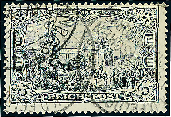 | Zusatzinformationen und Suchstichworte: | Dr. Derichs 165. Auktion Auktionstermin: 10. - 11. Juni 2022 Los 3863 Deutsche Auslandspost China, Petschili Ausgaben Petschili 3 Mk. "Reichspost", gute Type "II", Kabinettstück mit Stempel "K.D. Feldpostexped. des Ostasiatischen Expeditionscorps -a- 25/3" sowie mit zusätzlichem Teilabschlag des Bahnpoststempels "Kaiserlich Deutsche Bahnpost Peking Taku". Fotoattest Steuer BPP. (Michel 950.-). Ausruf 250,00 EUR |