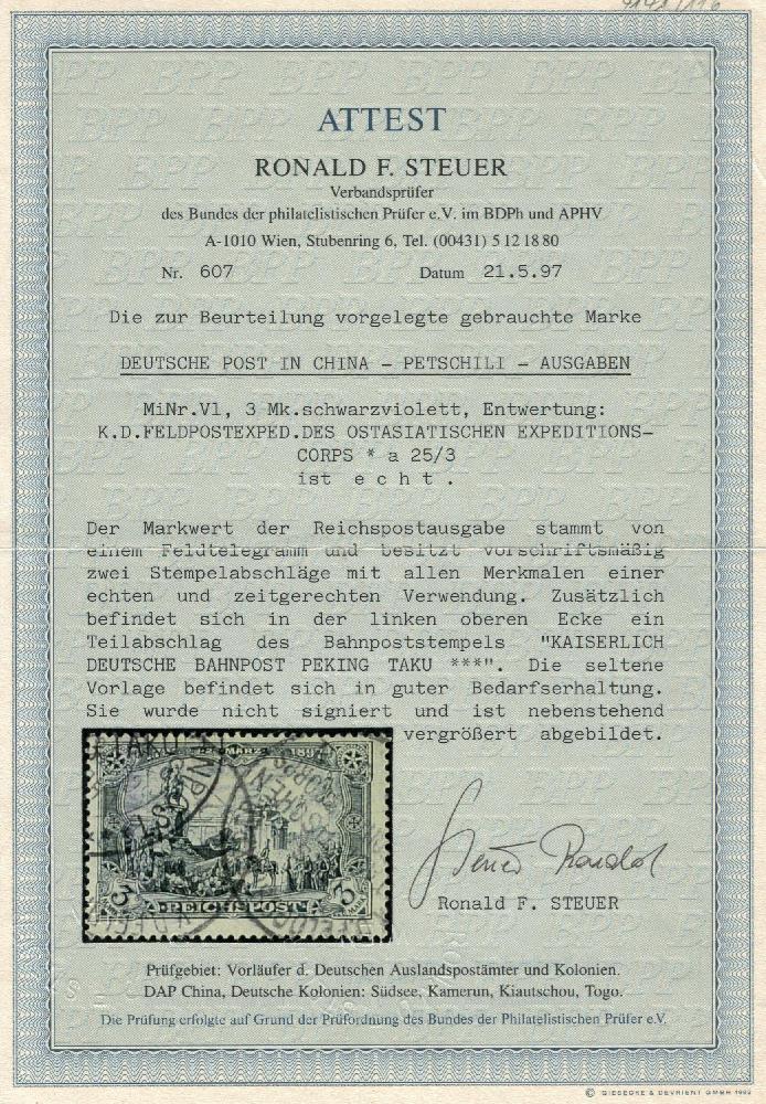 | Prüfgebiet: | Deutsche Auslandspostämter China Petschili-Ausgaben |