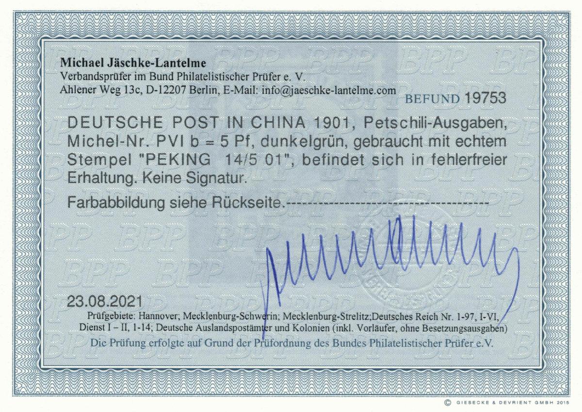 | Prüfgebiet: | Deutsche Auslandspostämter China Petschili-Ausgaben |