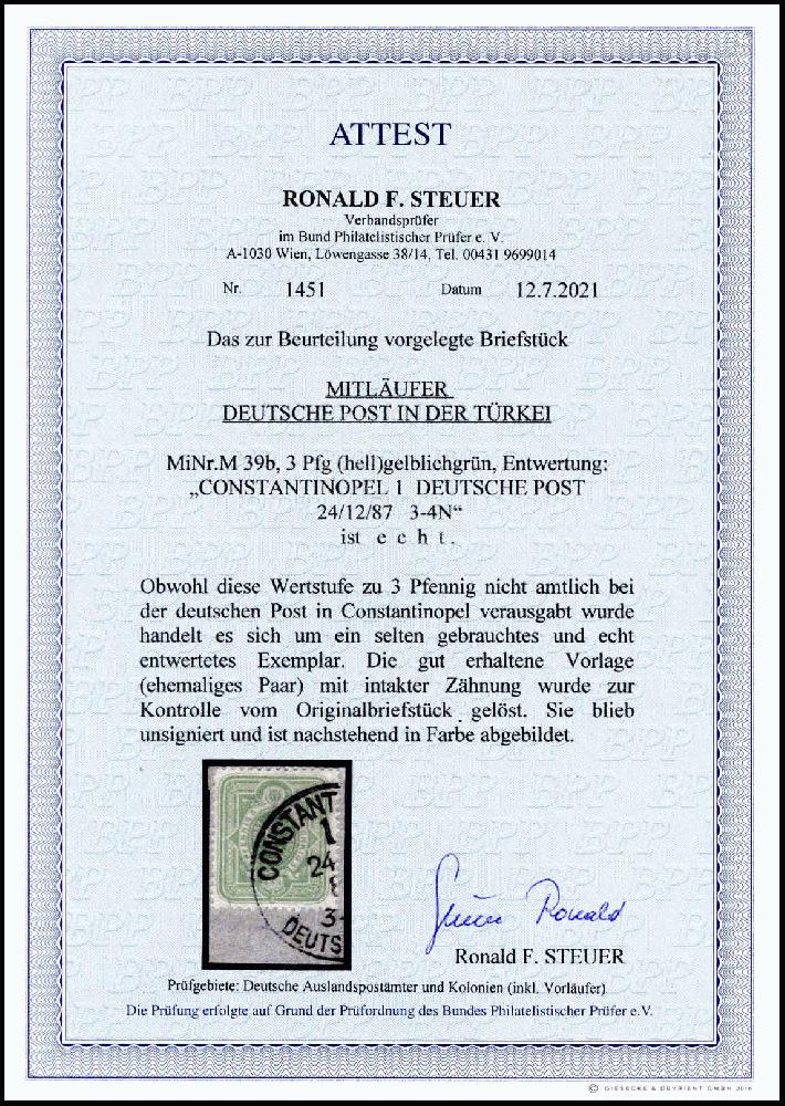 | Prüfgebiet: | Deutsche Auslandspostämter Türkei |