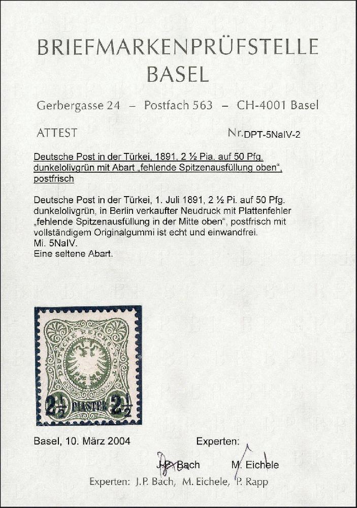 | Prüfer: | Bach, Jean-Paul, und Eichele, Martin (BPB (Briefmarkenprüfstelle Basel)) |