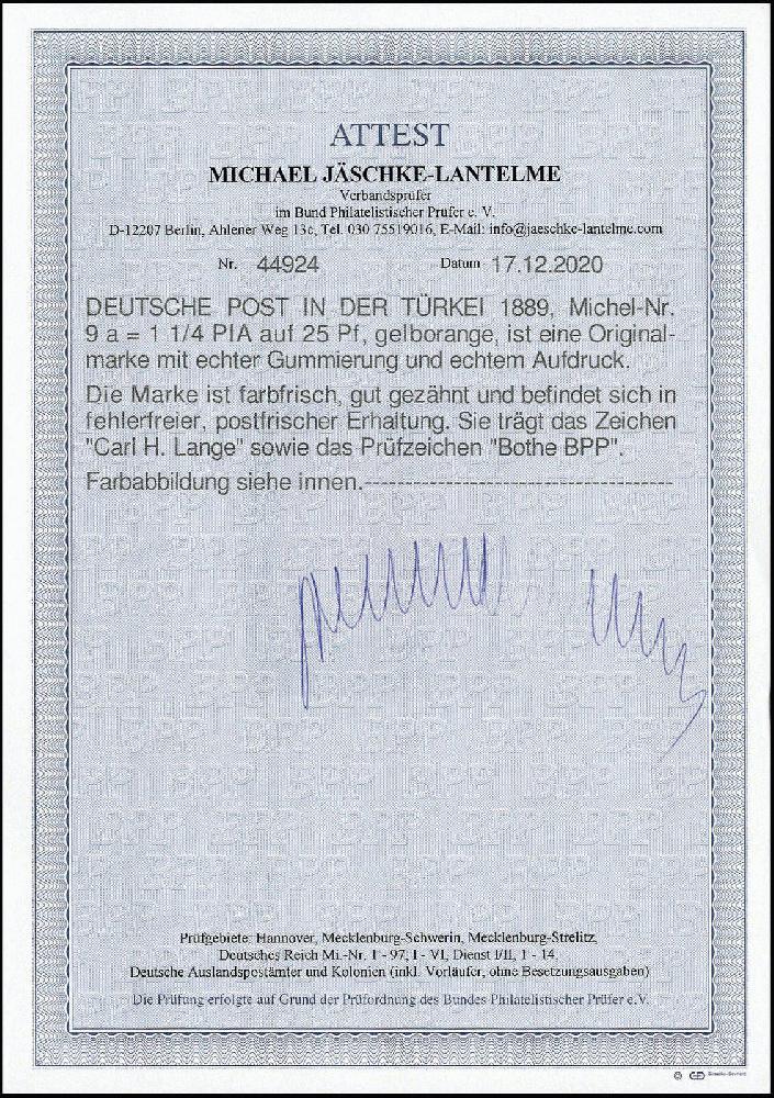 | Prüfer: | Jäschke-Lantelme, Michael (BPP (Bund Philatelistischer Prüfer)) |