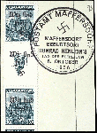 | Zusatzinformationen und Suchstichworte: | Dr. Reinhard Fischer 186. Auktion Auktionstermin: 18. - 21. Mai 2022 Los 3082 Sudetenland Maffersdorf 50 H. Freimarke "Briefmarkenausstellung Kaschau" im senkrechten Zwischenstegpaar mit Handstempel-Aufdruck "Wir sind frei! + Hakenkreuz" - dieser auch auf dem Zierfeld!, tadellos gestempelt mit Sonderstempel "Maffersdorf 8. Oktober 1938" auf Briefstück, Auflage nur 800 Stück - davon wenige als Zwischenstegpaar - und von denen wiederum auch nur ein kleiner Teil mit ebenso überdrucktem Zierfeld!, gepr. Dr. Hörr und Expertise Brunel VP (2021): "Die Erhaltung ist einwandfrei.", Mi. 600. Zuschlag 270,00 EUR |
