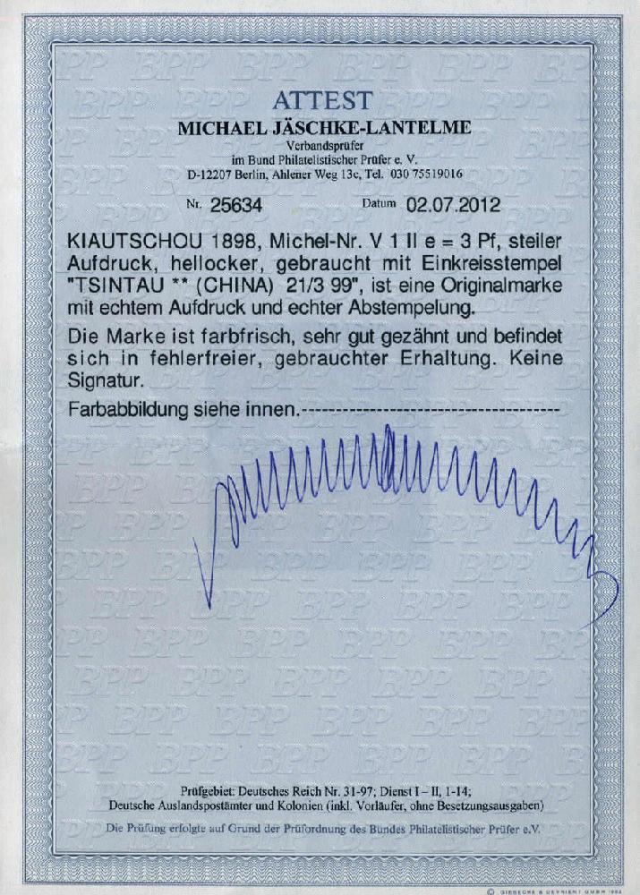 | Prüfgebiet: | Deutsche Kolonien Kiautschou |