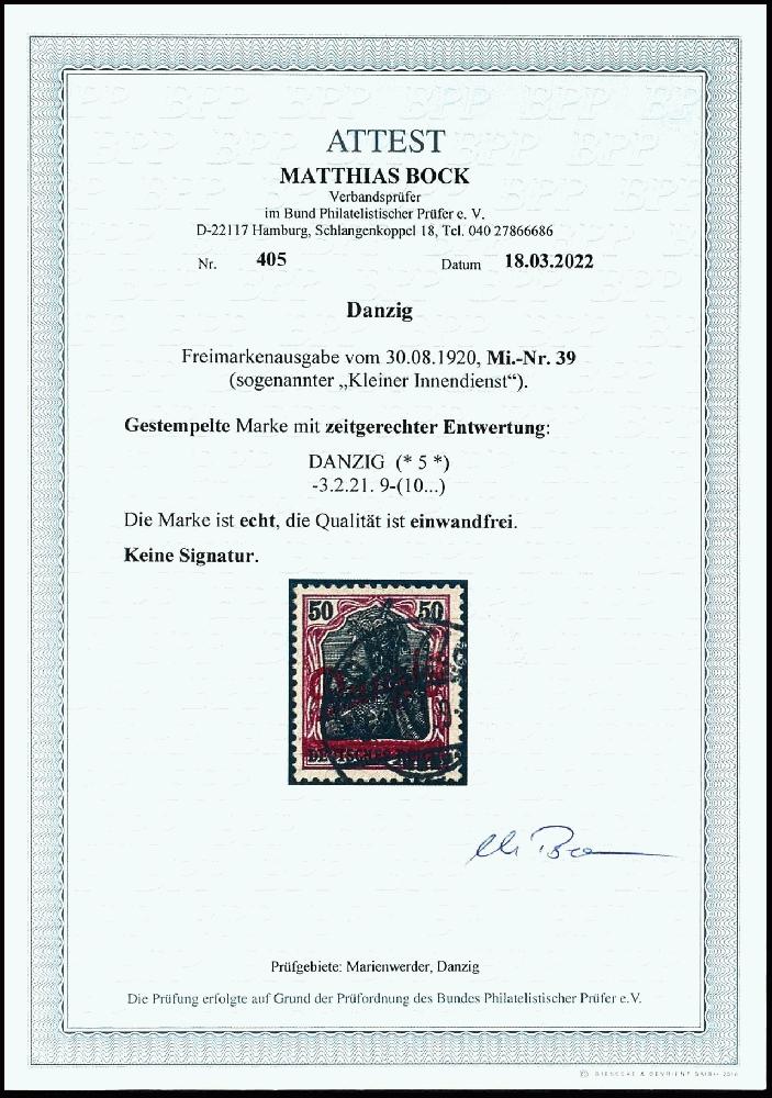 | Prüfer: | Bock, Matthias (BPP (Bund Philatelistischer Prüfer)) |