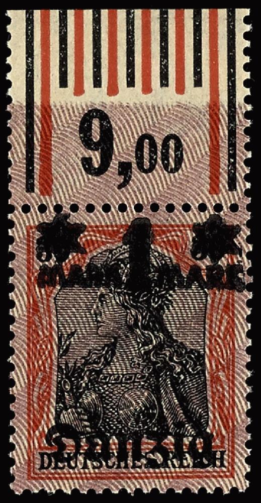 | Zusatzinformationen und Suchstichworte: | Dr. Reinhard Fischer 186. Auktion Auktionstermin: 18. - 21. Mai 2022 Los 2853 Danzig 1 Mark auf 30 Pfg Germania, doppelter Unterdruck Spitzen nach unten, Walzendruck Oberrandstück, postfrisch, Fotoattest Soecknick BPP: "echt und einwandfrei", Mi. 3.200.- (Auf dieses Los werden 7 % Importabgaben auf den Zuschlagpreis berechnet, soweit der Versand innerhalb der EU oder Großbritannien erfolgt) Ausruf 800,00 EUR |