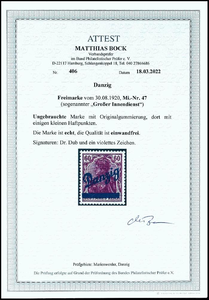 | Prüfer: | Bock, Matthias (BPP (Bund Philatelistischer Prüfer)) |