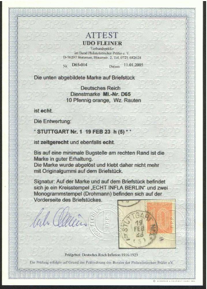 | Prüfgebiet: | Deutsches Reich Dienstmarken 1874 - 1945 |