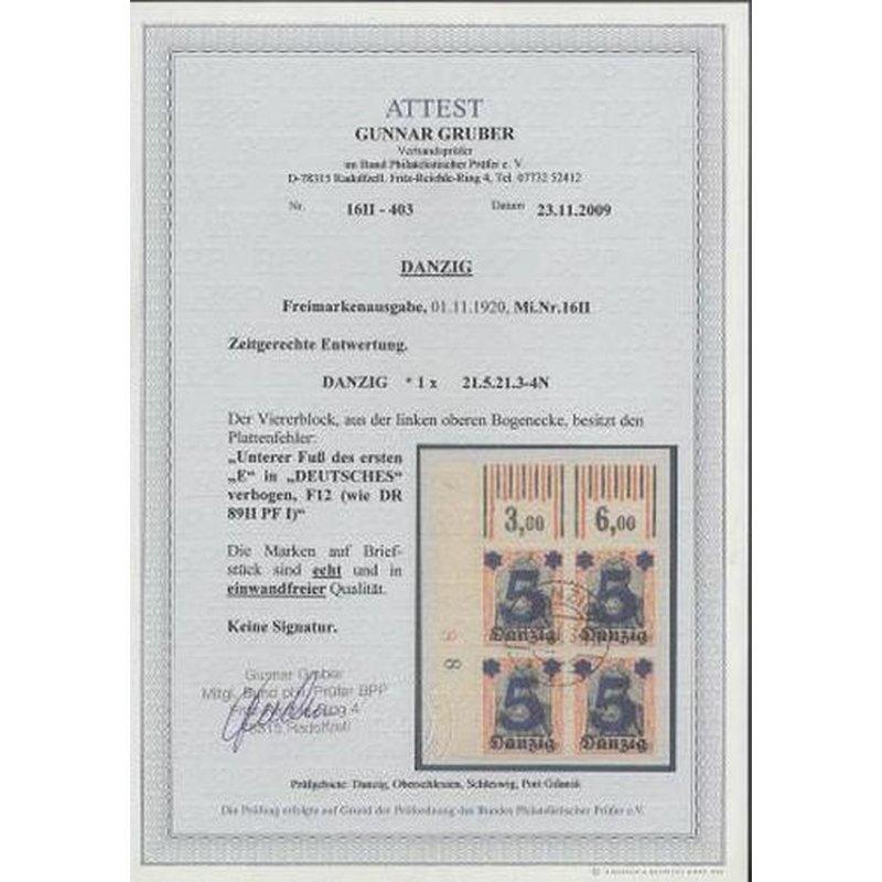 | Zusatzinformationen und Suchstichworte: | Büteröwe Webshop Los 8340 (D) Danzig Danzig 1920 Mi. Nr. 16 II gestempelt geprüft/Attest gestempelt im Eckrand 4er Block geprüft mit Attest echt und einwandfrei Michel ca. 1000-1500 ++ . Sie erhalten den abgebildeten Artikel Festpreis 359,95 EUR |