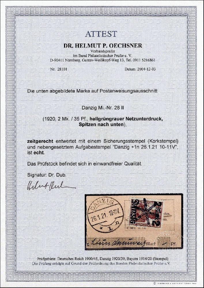 | Prüfer: | Oechsner, Helmut (BPP (Bund Philatelistischer Prüfer)) |
