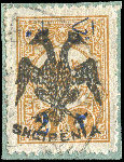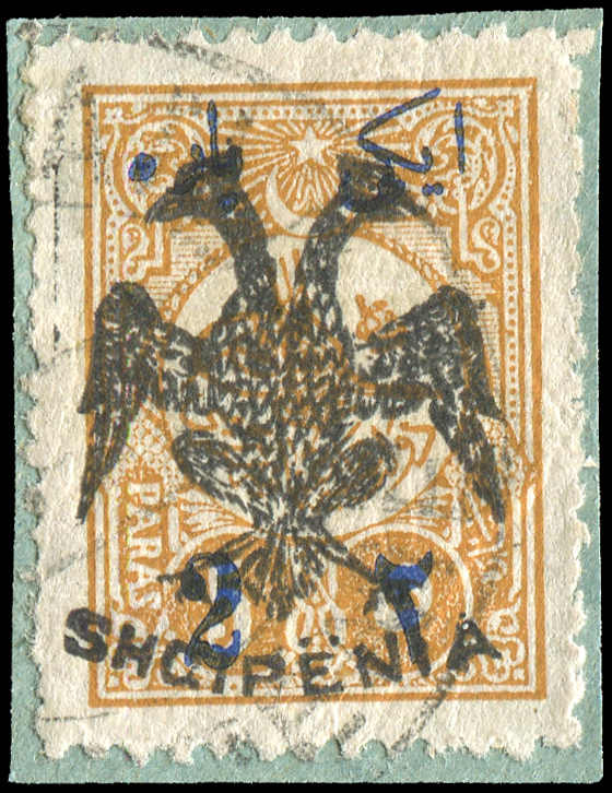| Zusatzinformationen und Suchstichworte: | 30. Schlegel Auktionshaus Auktion Auktionstermin: 25. - 27. April 2022 Los 1832 Albanien 1913, 2 Pa. auf 5 Pa. Überdruckmarke mit Handstempel-Aufdruck Doppeladler auf den Türkeimarken der Ausgabe 1908/11, gest. Einzelwert auf kleinem Briefstück, farbfrisch, üblich gezähnt und zentriert, rückseitig sign. und Fotoattest Dr. M. Peters (ME 2.000,-) Zuschlag 550,00 EUR |
