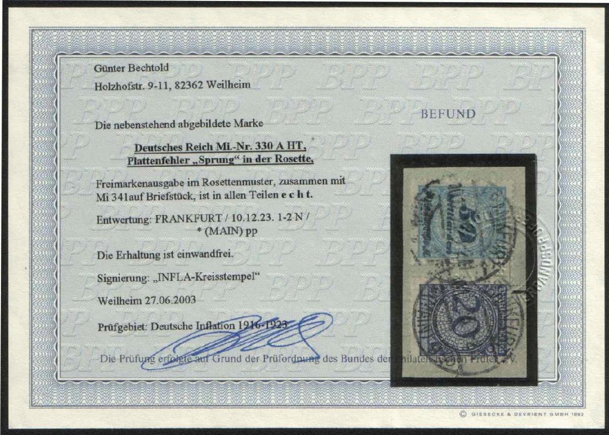 | Prüfgebiet: | Deutsches Reich 1919 - 1923 (Mi-Nr. 107 - 343) |
