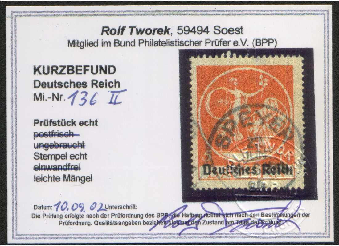 | Prüfgebiet: | Deutsches Reich 1919 - 1923 (Mi-Nr. 107 - 343) |