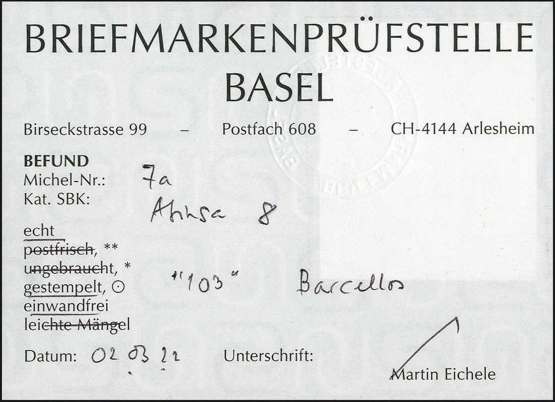 | Prüfer: | Eichele, Martin (BPB (Briefmarkenprüfstelle Basel)) |