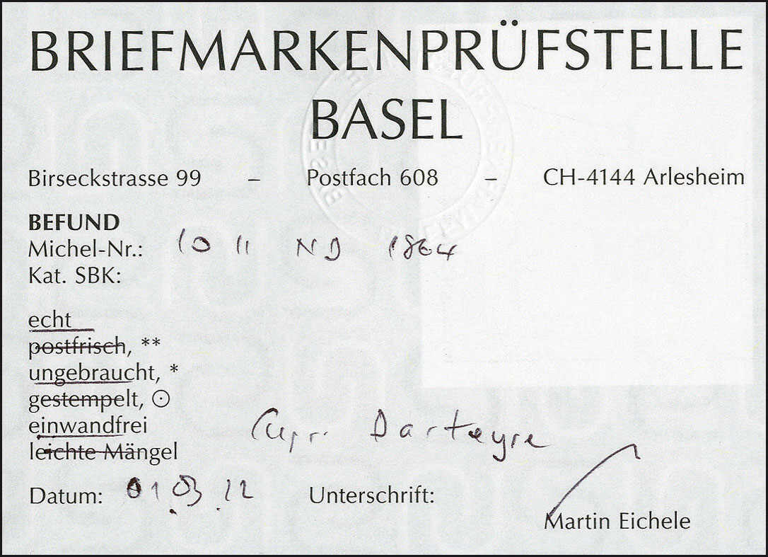 | Prüfer: | Eichele, Martin (BPB (Briefmarkenprüfstelle Basel)) |