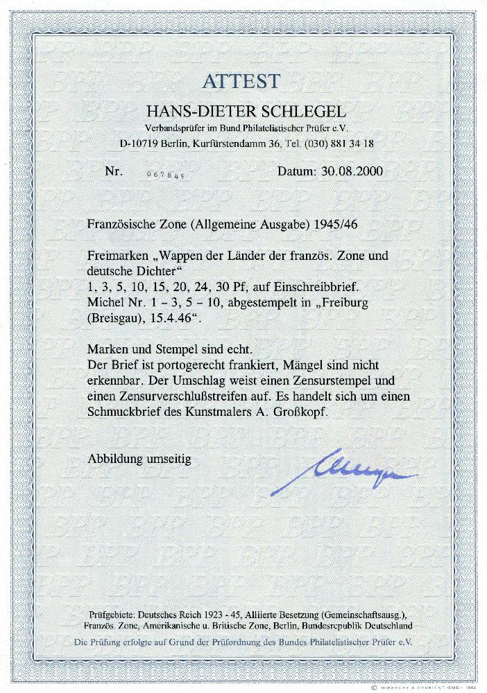 | Prüfgebiet: | Alliierte Besetzung Französische Zone Allgemeine Ausgaben |