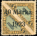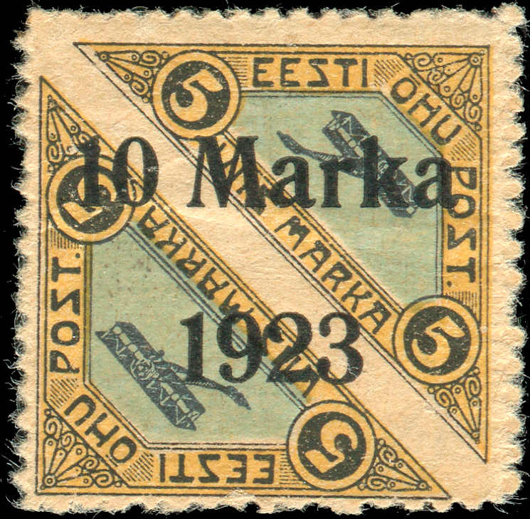 | Zusatzinformationen und Suchstichworte: | 30. Schlegel Auktionshaus Auktion Auktionstermin: 25. - 27. April 2022 Los 1917 Estland 1923, 10 M. auf 5+5 M. Flugpost, gezähnt L 11½ Päevaleht, Spargummierung, ungebraucht, einwandfrei, Auflage nur 400 Stück - eine Seltenheit der Estlandphilatelie! signiert Boone und Teestov, Fotoattest Löbbering BPP Zuschlag 400,00 EUR |