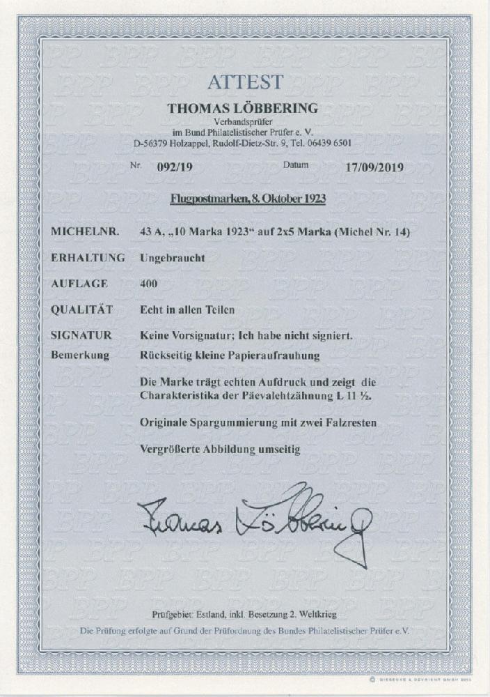 | Prüfer: | Löbbering, Thomas (BPP (Bund Philatelistischer Prüfer)) |