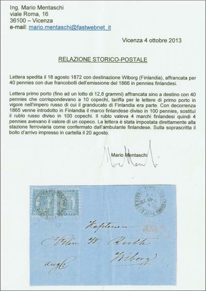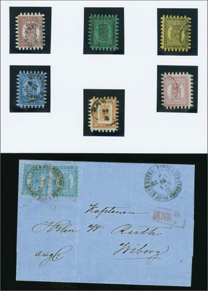 | Zusatzinformationen und Suchstichworte: | 284. - 290. Corinphila Auktion Auktionstermin: 30. Mai - 2. Juni 2022 Los 1389 Finnland 1866: Rouletted Issue, Type III(C), the selection (7 items) with 5 p. brown-lilac cancelled by "Tammerfors" cds in blue, 8 p. black on green, 10 p. black on straw lightly cancelled, 20 p. blue on blued single and two examples used on 1872 cover to Wiborg; 40 p. rose and 1 m. yellow-brown (signed Richter); occasional short tooth but all of generally fine appearance. A scarce group Mi = € 2'500+ Ausruf 300,00 CHF |