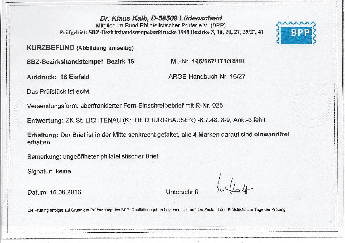 | Prüfgebiet: | Alliierte Besetzung SBZ Bezirkshandstempel Bezirk 16 |