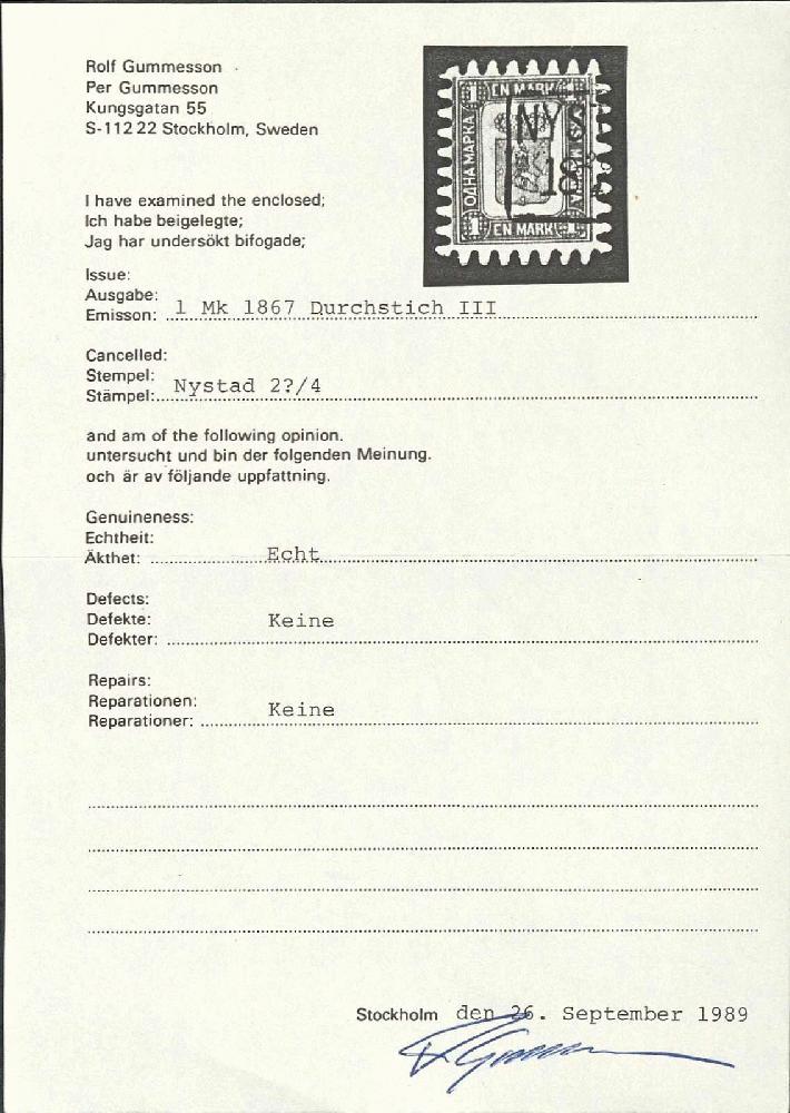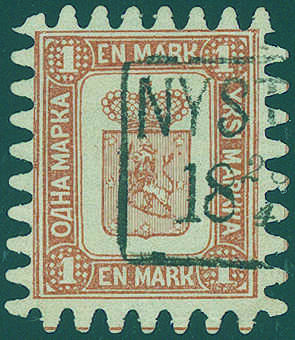 | Zusatzinformationen und Suchstichworte: | Gert Müller 114. Auktion Auktionstermin: 25. Mai 2022 Los 2556 Finnland 1 Markka gelbbraun auf weiß 1867, wundervoll farbfrisch mit allen Zungen und sauber, klar aufgesetztem Rahmenstempel "NYSTAD". In dieser exzellenten Qualität fast nie angeboten. Ein Traumstück für hohe Ansprüche! Fotoattest Gummesson. Ausruf 900,00 EUR |