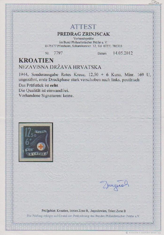 | Prüfer: | Zrinjšćak, Predrag (BPP (Bund Philatelistischer Prüfer)) |