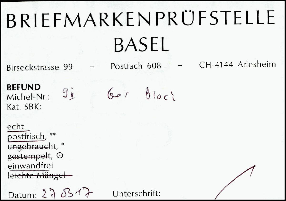 | Prüfer: | Eichele, Martin (BPB (Briefmarkenprüfstelle Basel)) |