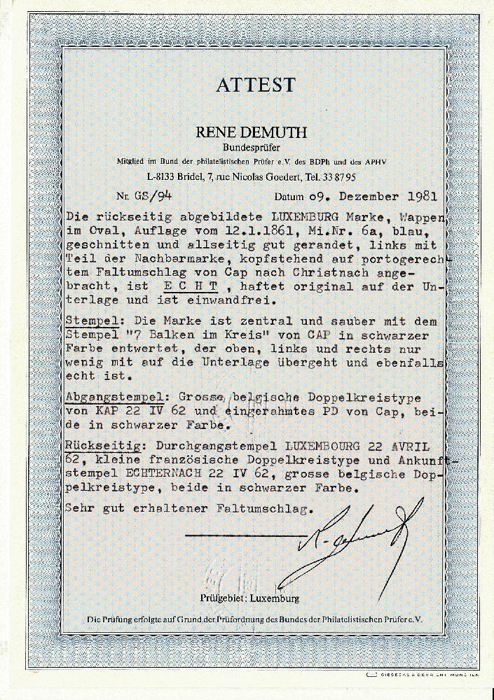 | Prüfer: | Demuth, René (BPP (Bund Philatelistischer Prüfer)) |