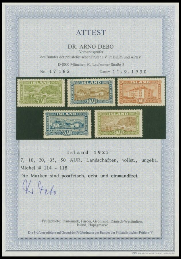 | Zusatzinformationen und Suchstichworte: | nordphila 485. Briefmarkenfernauktion Auktionstermin: 30. Mai 2022 Los 4034 Island 1925, "Ansichten", postfrischer Prachtsatz, Fotoattest Dr. Debo, Mi. 700.- Ausruf 200,00 EUR |