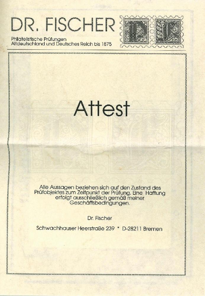 | Zusatzinformationen und Suchstichworte: | Rapp Auktion 2022 Auktionstermin: 2. - 7. Mai 2022 Los 940 Altdeutschland Bremen 5 Sgr. dunkelgrünlicholiv, Plattenfehler "rechter Kopf am Griff des Bremer Schlüssels fehlt", die sehr frische und perfekt gezähnte Marke ist übergehend mit Rahmenstempel BREMEN 5.12 (1866) auf vollständigem Faltbrief nach London. Briefe mit dieser Farbnuance und erst noch mit dem seltenen Plattenfeheler dürften äusserst selten sein. Attest Fischer. Zuschlag 3.000,00 CHF |