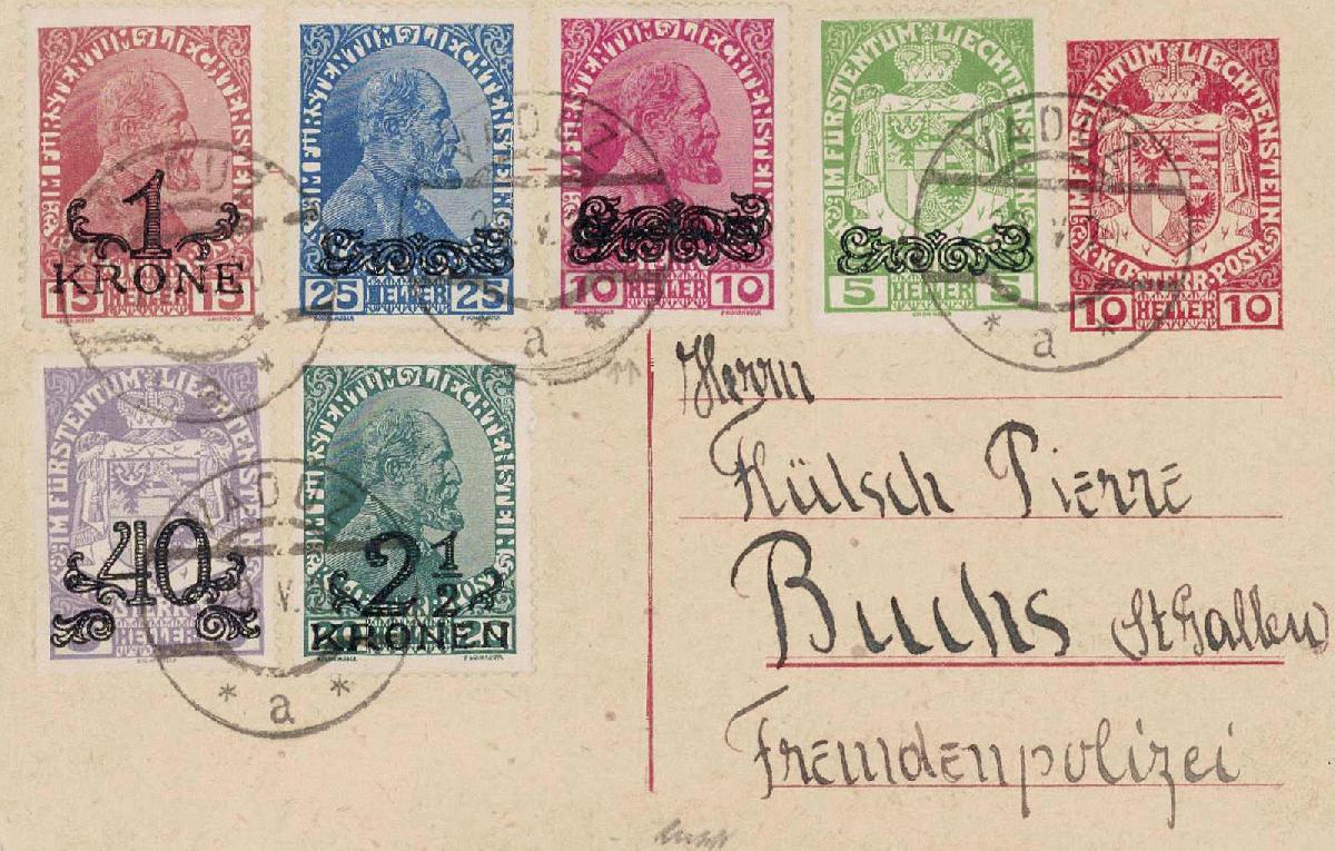 | Zusatzinformationen und Suchstichworte: | Leandra Honegger Briefmarken 1. Online Auktion Auktionstermin: 15.-19. Juni 2022 Los 457 Liechtenstein 1920, Aufbrauchsausgabe, Serie auf 10 Heller-Ganzsache, 10 Heller mit der Abart: 12DD, doppelter Aufdruck, saubere Stempel VADUZ 29.V.20. Sign. Rupp Ausruf 200,00 CHF |