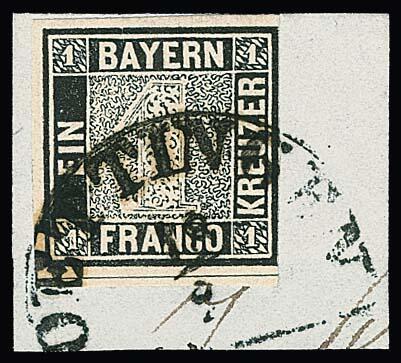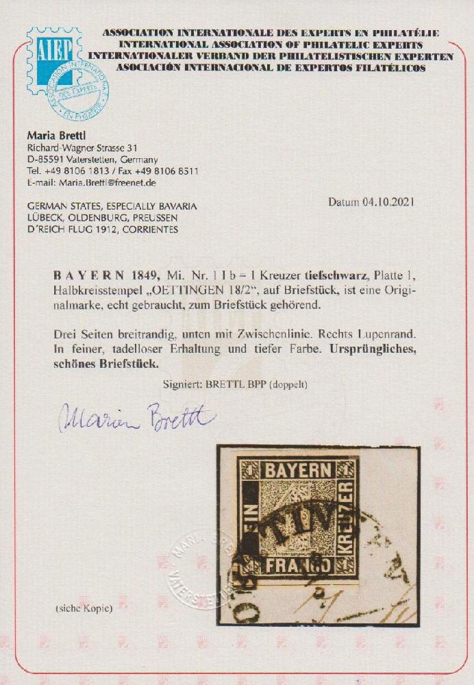| Zusatzinformationen und Suchstichworte: | Rauhut & Kruschel - 212. Auktion Auktionstermin: 30. Juli 2022 Los 271 Altdeutschland Bayern 1 Kr. tiefschwarz, Platte I, rechts noch voll-, sonst dreiseitig sehr breitrandig, auf Kabinettbriefstück mit HK "Oettingen". Ursprüngliches, schönes Briefstück dieser guten Nuance. Sign. Brettl BPP mit Attest Ausruf 3.000,00 EUR |