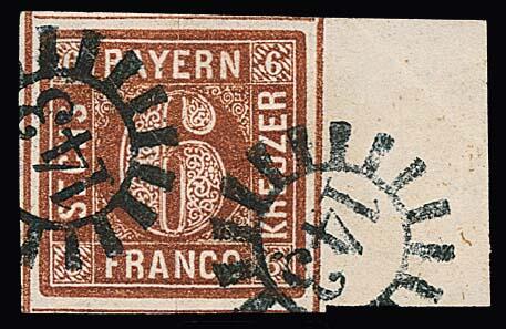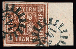 | Zusatzinformationen und Suchstichworte: | Rauhut & Kruschel - 212. Auktion Auktionstermin: 30. Juli 2022 Los 286 Altdeutschland Bayern 6 Kr. braun, Platte 1, sehr breitrandiges Luxusstück, alle Schnittlinien, rechts bis zu 18mm breiter Bogenrand (Bugspur nur im Rand) mit seltener Entwertung durch bläulichschwarzen gMR "143", sign. Brettl und Fotoexp. Stegmüller Ausruf 250,00 EUR |