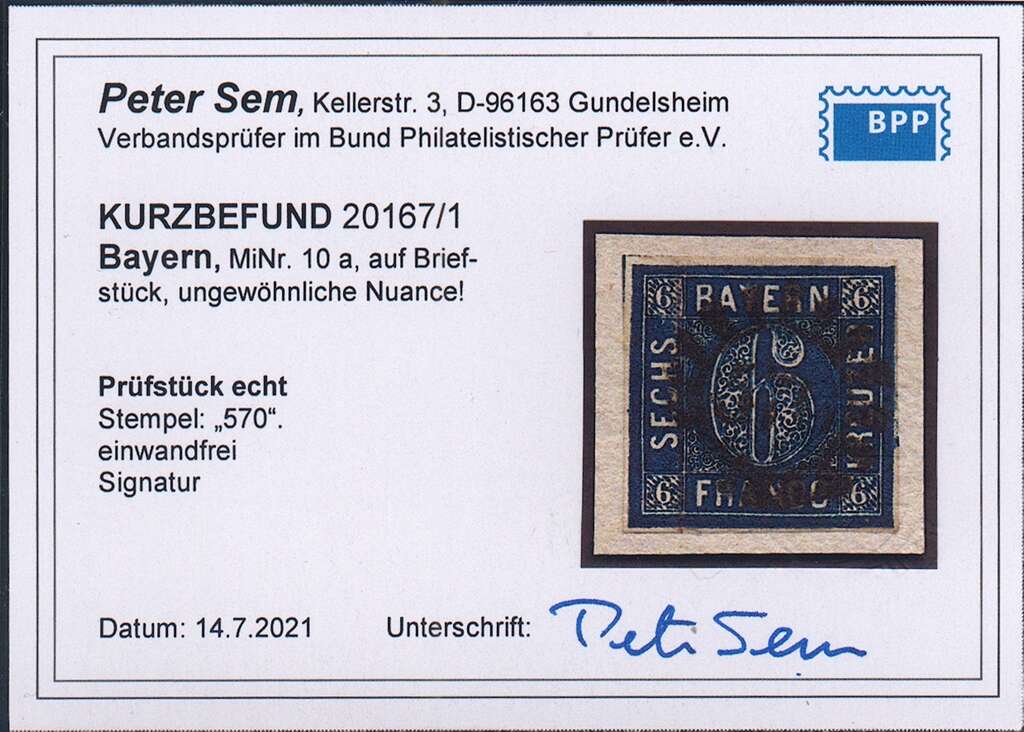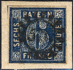 | Zusatzinformationen und Suchstichworte: | Uwe von Poblocki Los 0948702707 Altdeutschland Bayern 1862, 6 Kr. schwarzblau! Voll- bis breitrandig auf Briefstück mit MR '570' (=Weißenburg Mfr.), FKB Sem BPP "einwandfrei...ungewöhnliche Nuance" Festpreis 65,00 EUR |