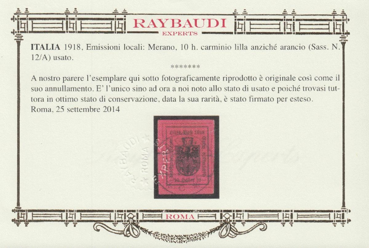 | Prüfgebiet: | Italien Lokalausgaben Hilfspost Meran 1918 |