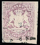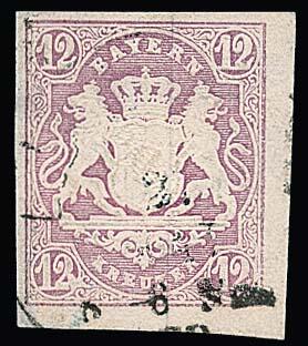| Zusatzinformationen und Suchstichworte: | Rauhut & Kruschel - 212. Auktion Auktionstermin: 30. Juli 2022 Los 320 Altdeutschland Bayern12 Kr. purpur, gut sichtbarer Plattenfehler "Fuß der linken 2 verstümmelt", sauber gestempelt, linker Rand angesetzt, Fotoexp. Sem. Mi. 300,-Ausruf 45,00 EUR |