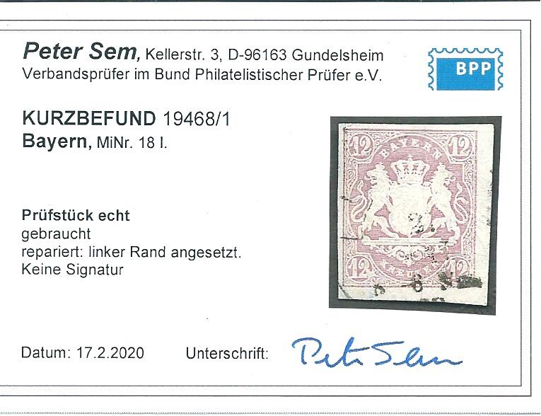 | Prüfer: | Sem, Peter (BPP (Bund Philatelistischer Prüfer)) |