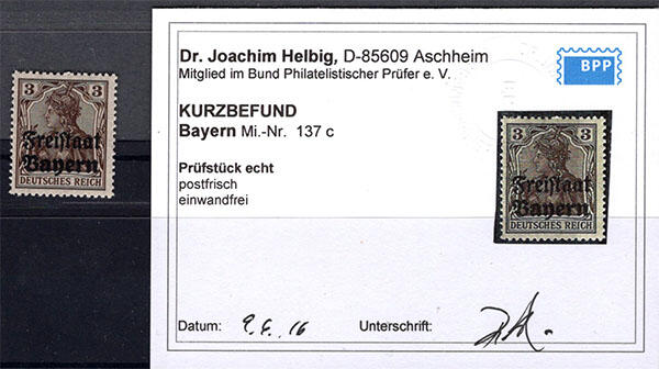 | Prüfer: | Helbig, Joachim (BPP (Bund Philatelistischer Prüfer)) |