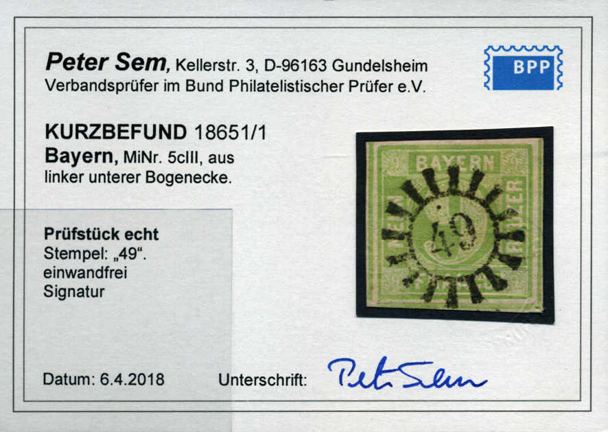 | Prüfer: | Sem, Peter (BPP (Bund Philatelistischer Prüfer)) |
